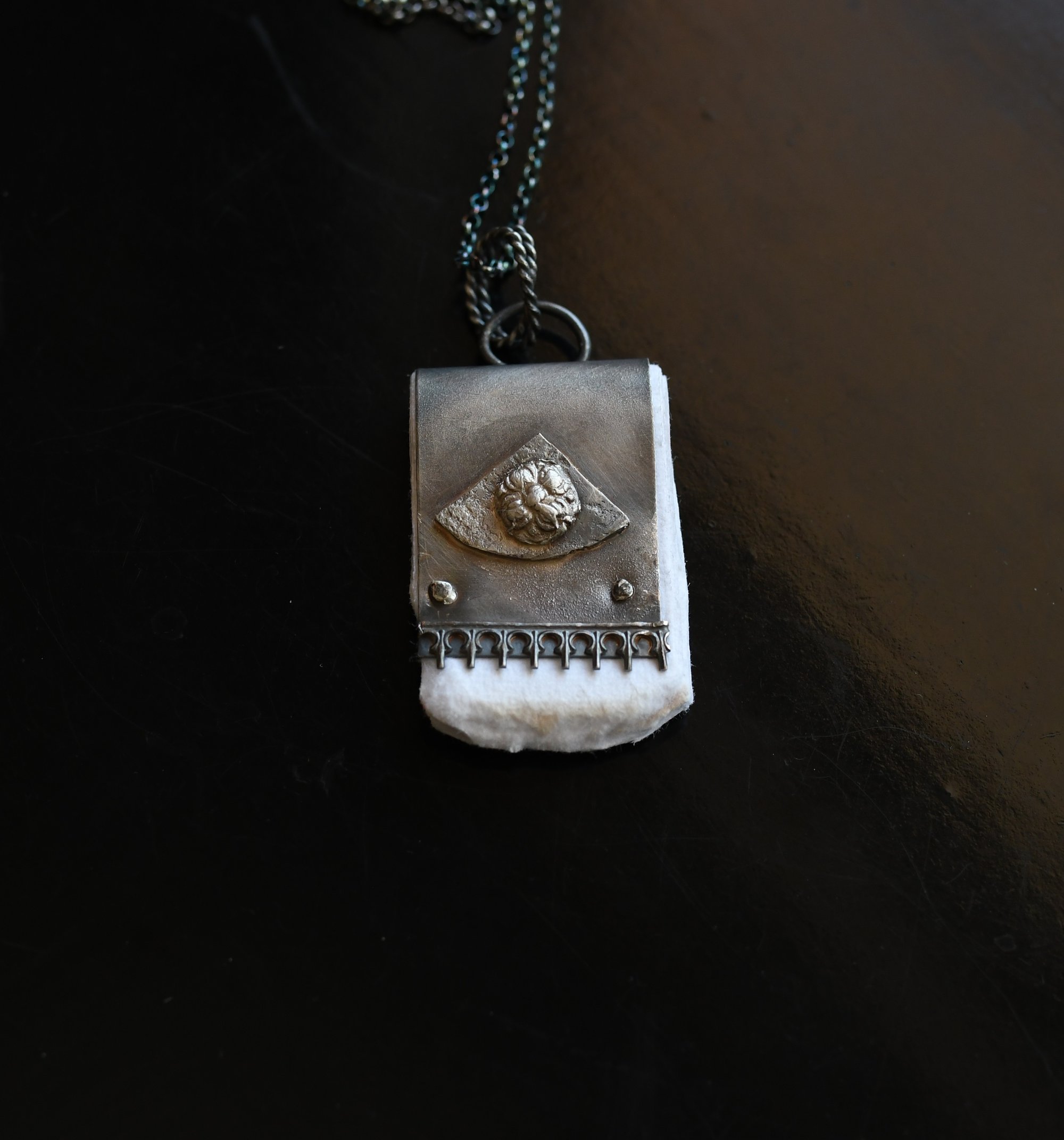 This one of a kind necklace holds the whisper of love in the pages, bound lovingly in a sterling silver and fine silver casing.