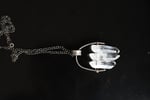 Measuring 6cm long x 3.5cm wide and comes with a silver chain.