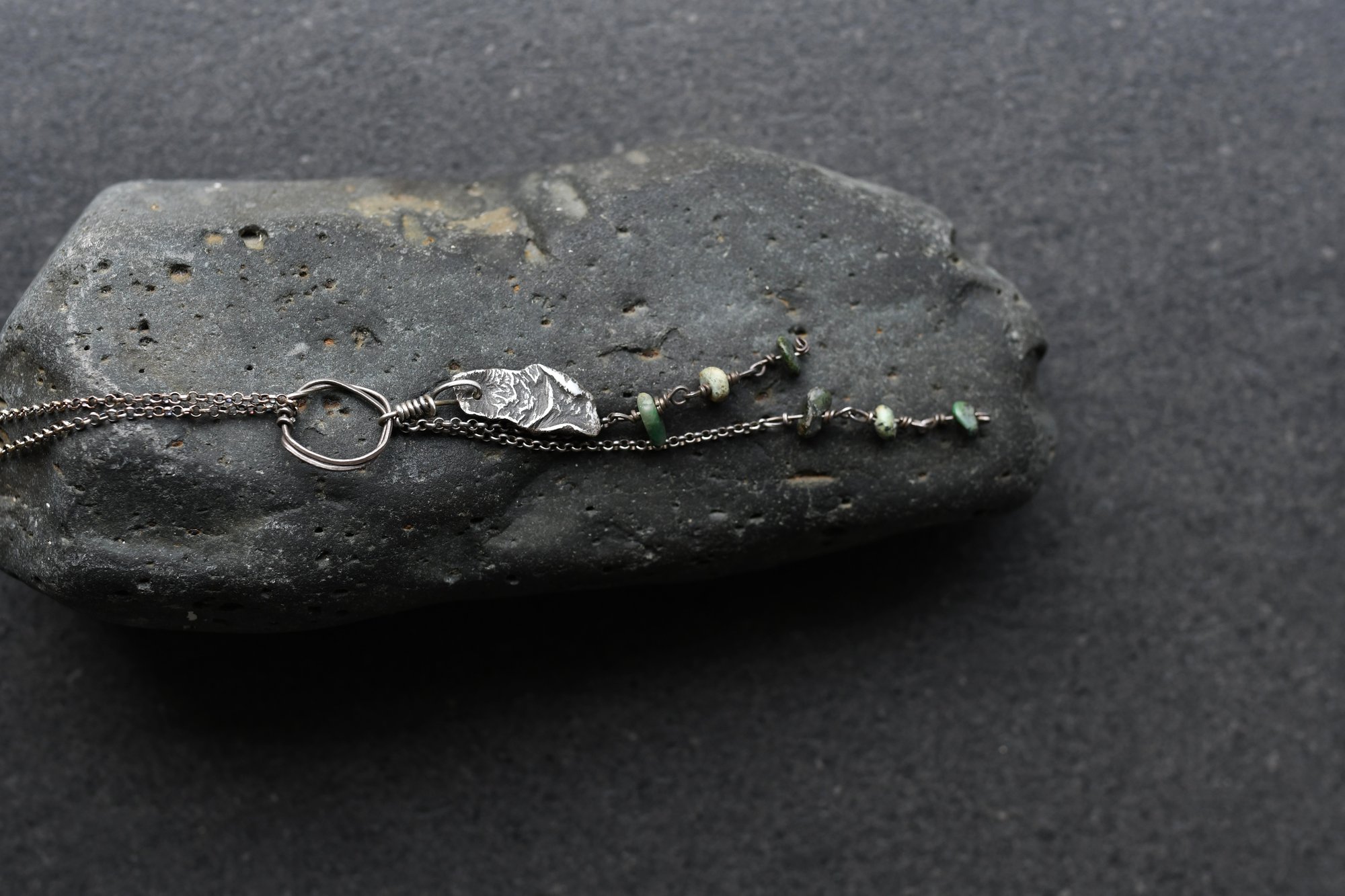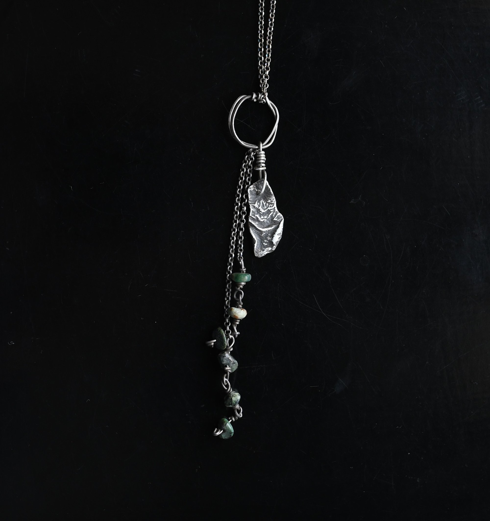 Measuring 13cm long x 2cm wide and comes with silver chain.