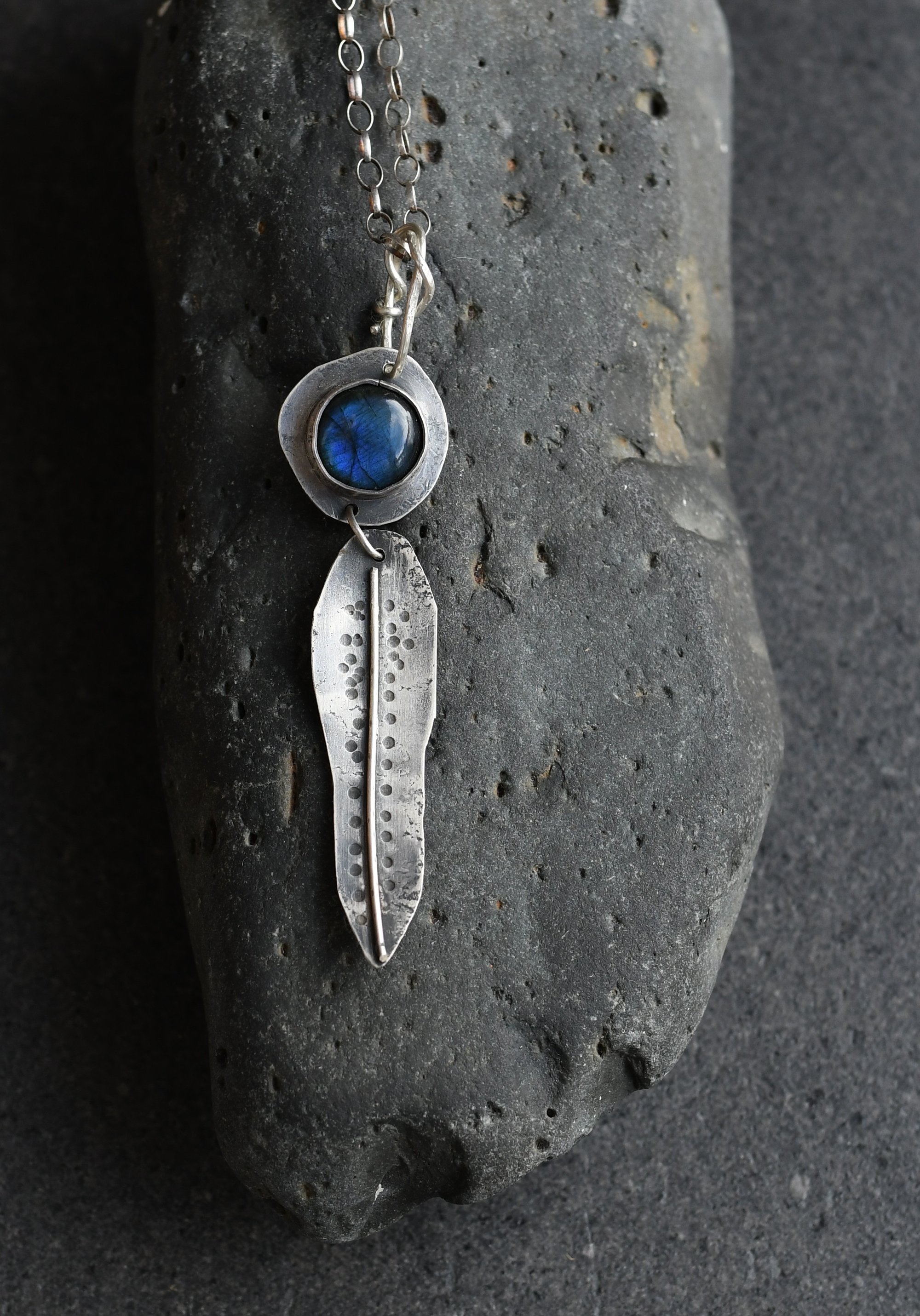 Labradorite is a highly mystical and protective stone, a bringer of light. It raises consciousness and connects with universal energies. It deflects unwanted energies and prevents energy leaking. This pendant is made from recycled sterling silver.
