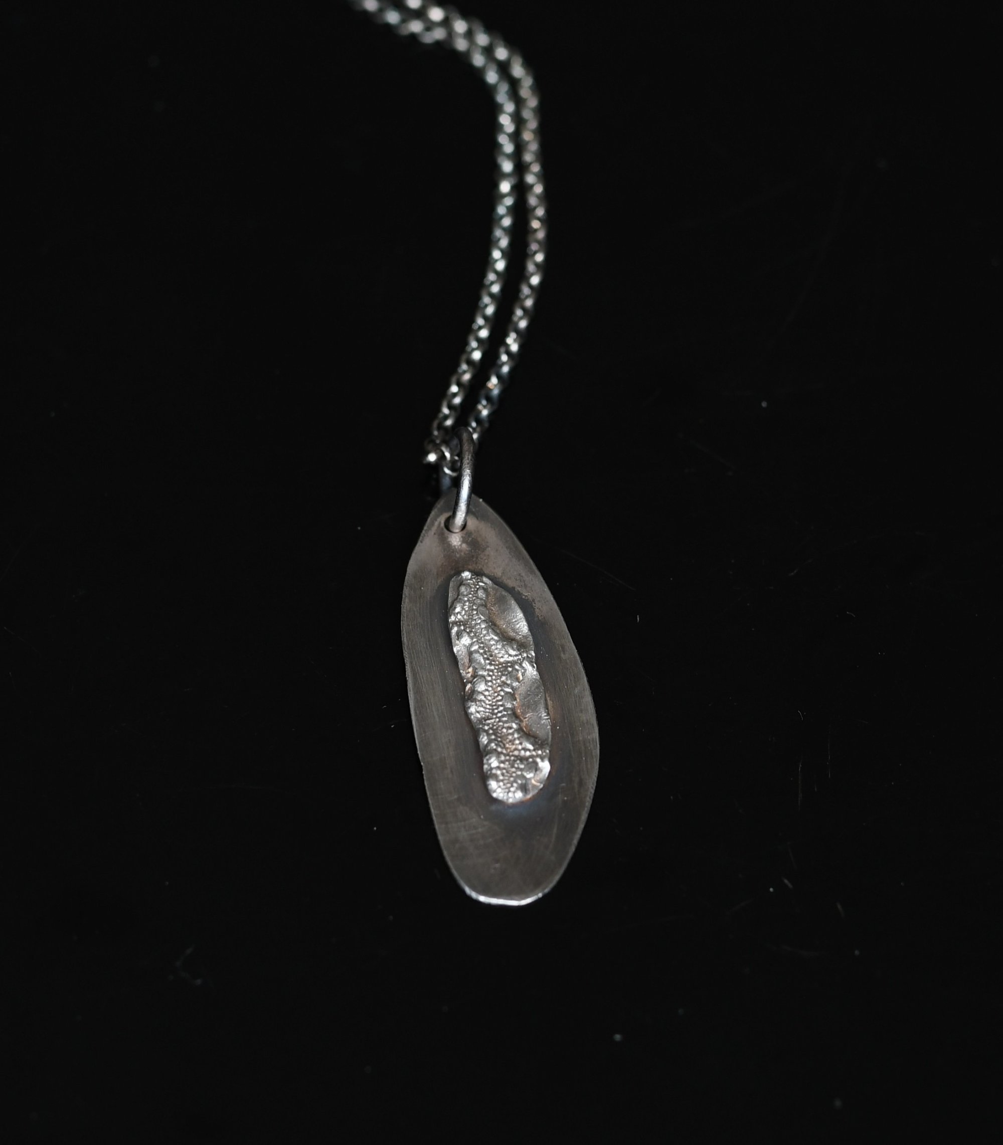 This is a unique natural impression of a sea urchin, which I have made in fine silver metal clay.