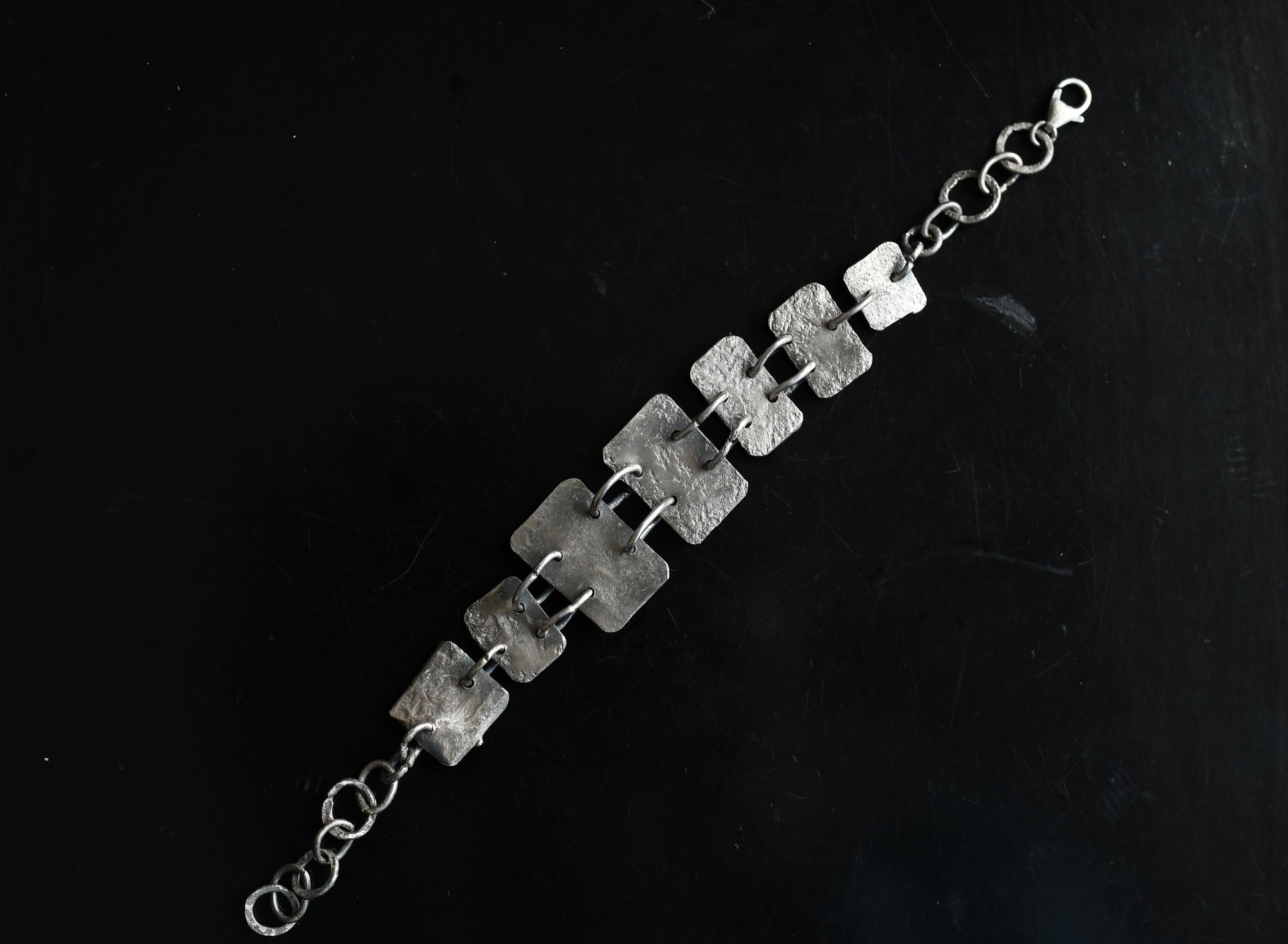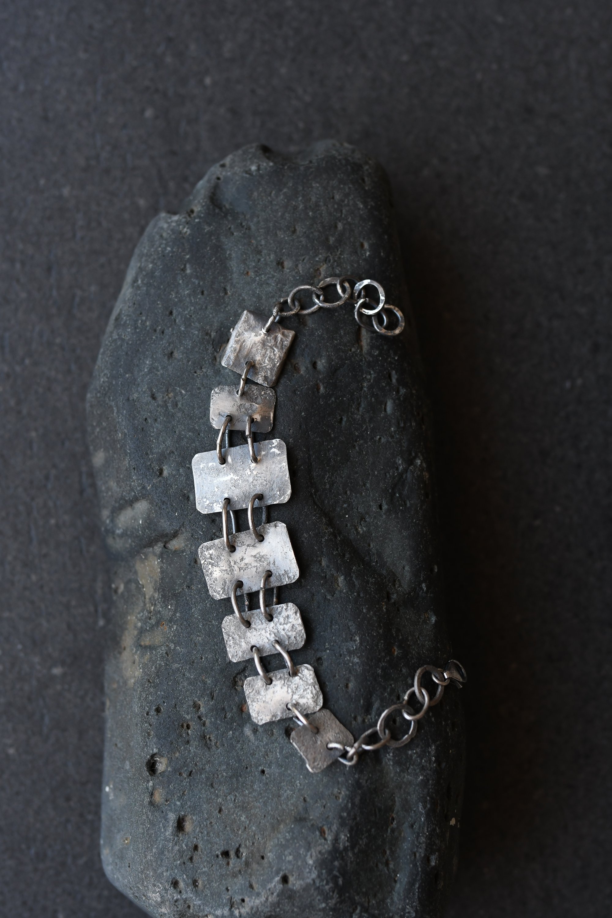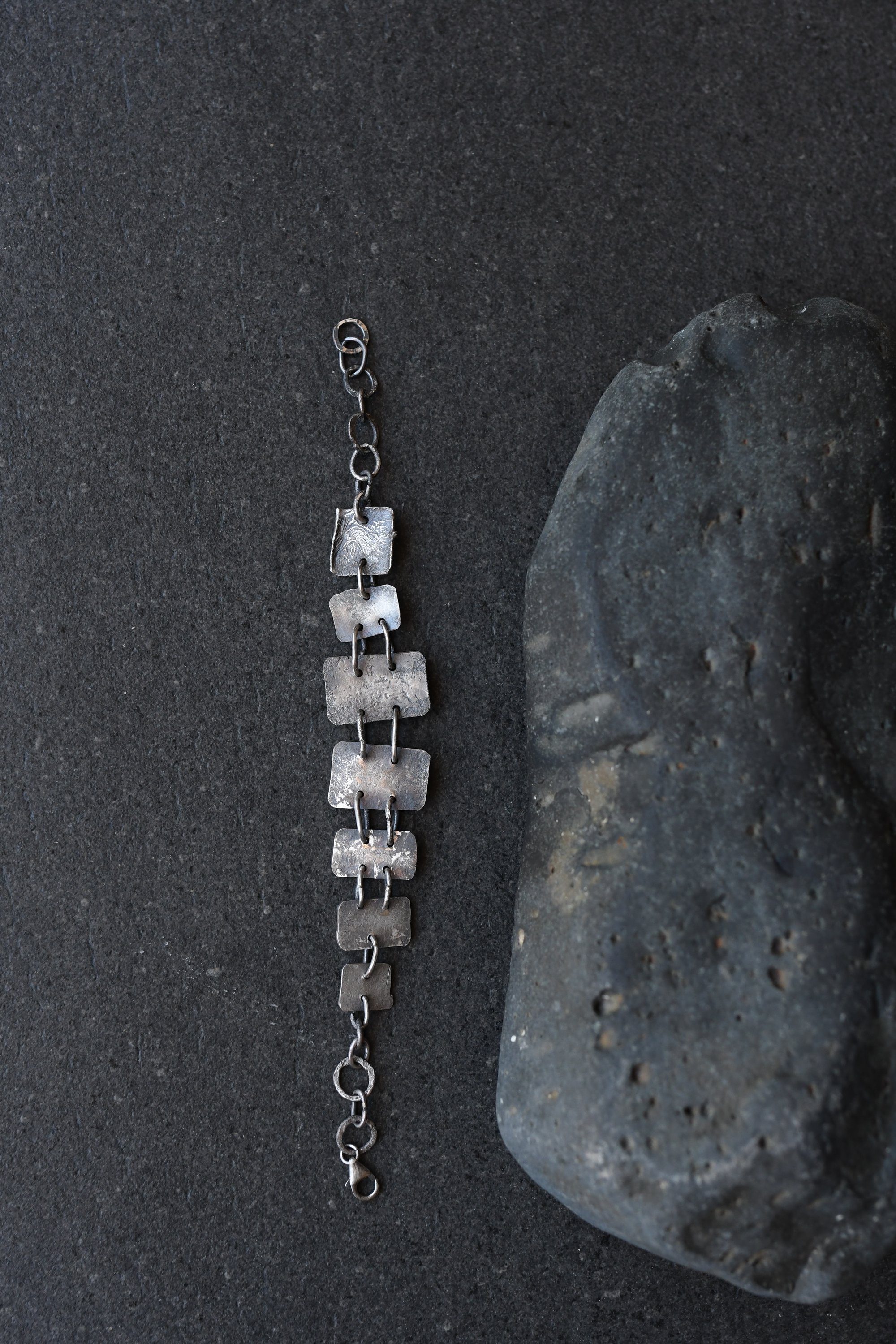 This Silver bracelet has been hand textured on raw rock giving it a rustic organic texture. It has a lovely weathered feel to it.
