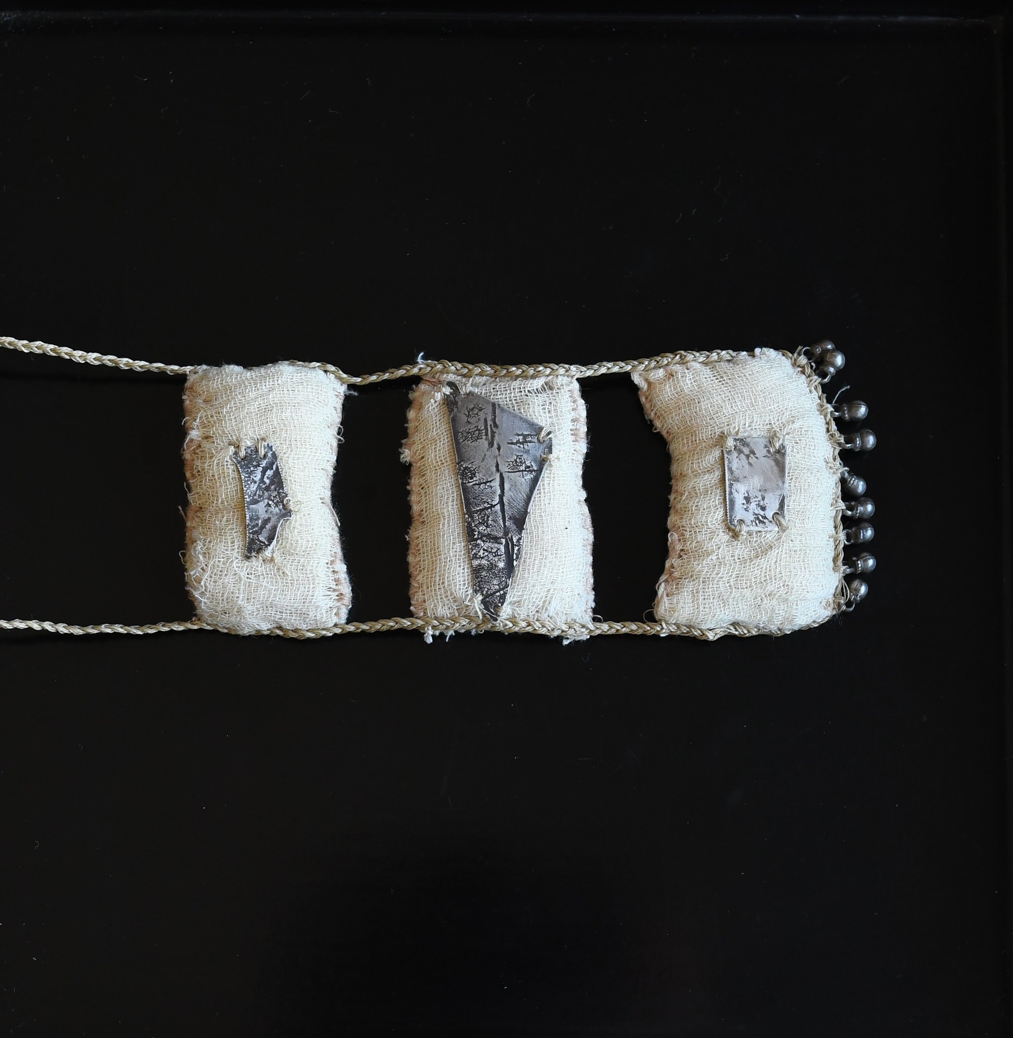 I have made these to carry a very soft gentle energy, gently releasing its scent as you move. This necklace has been handstitched in eco dyed muslin filled with Frankincense and Myrrh resin. It features handmade sterling silver charms made by me and bronze beads. It has a plaited waxed cotton cord that can be tied to a short or long length.