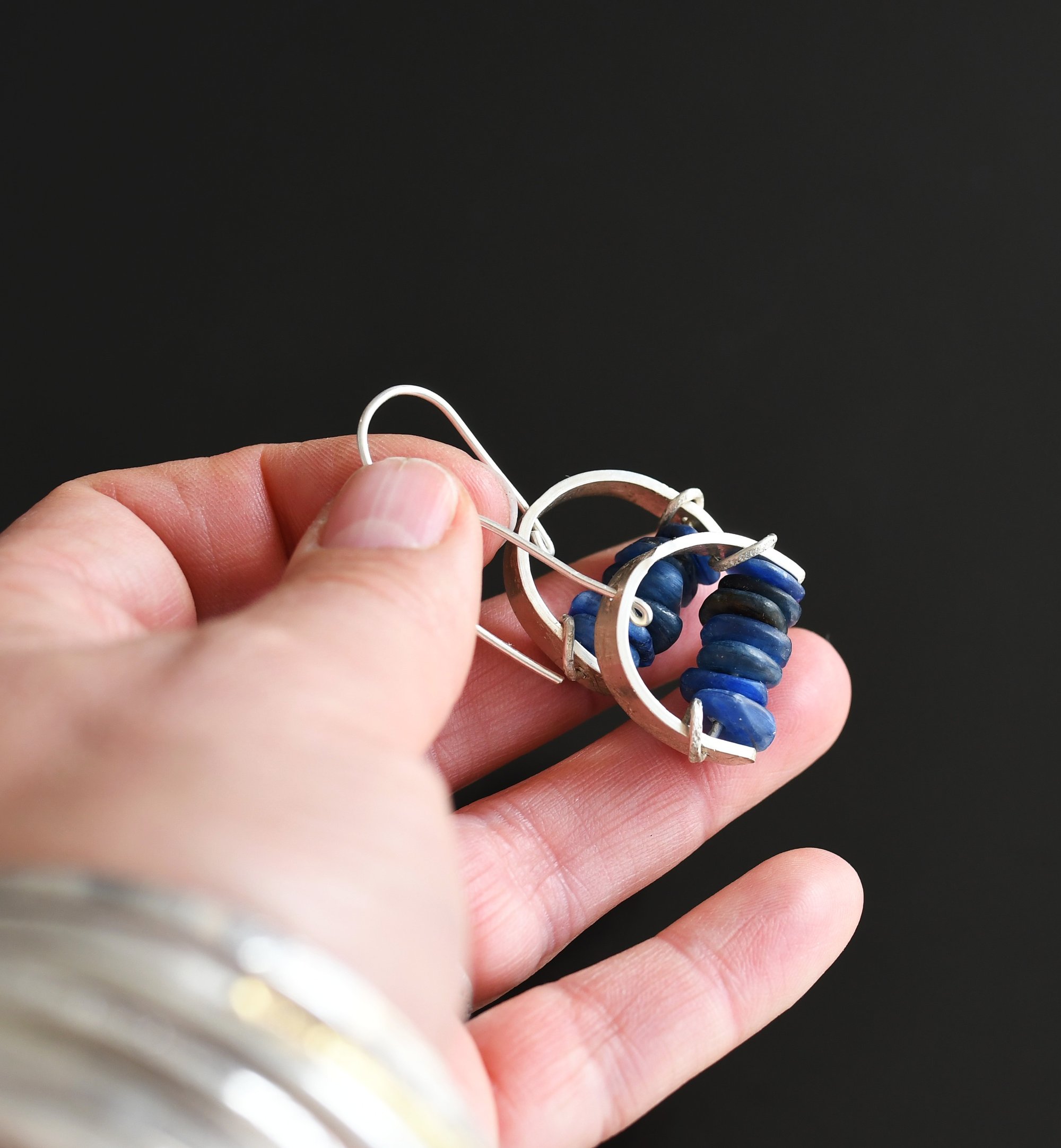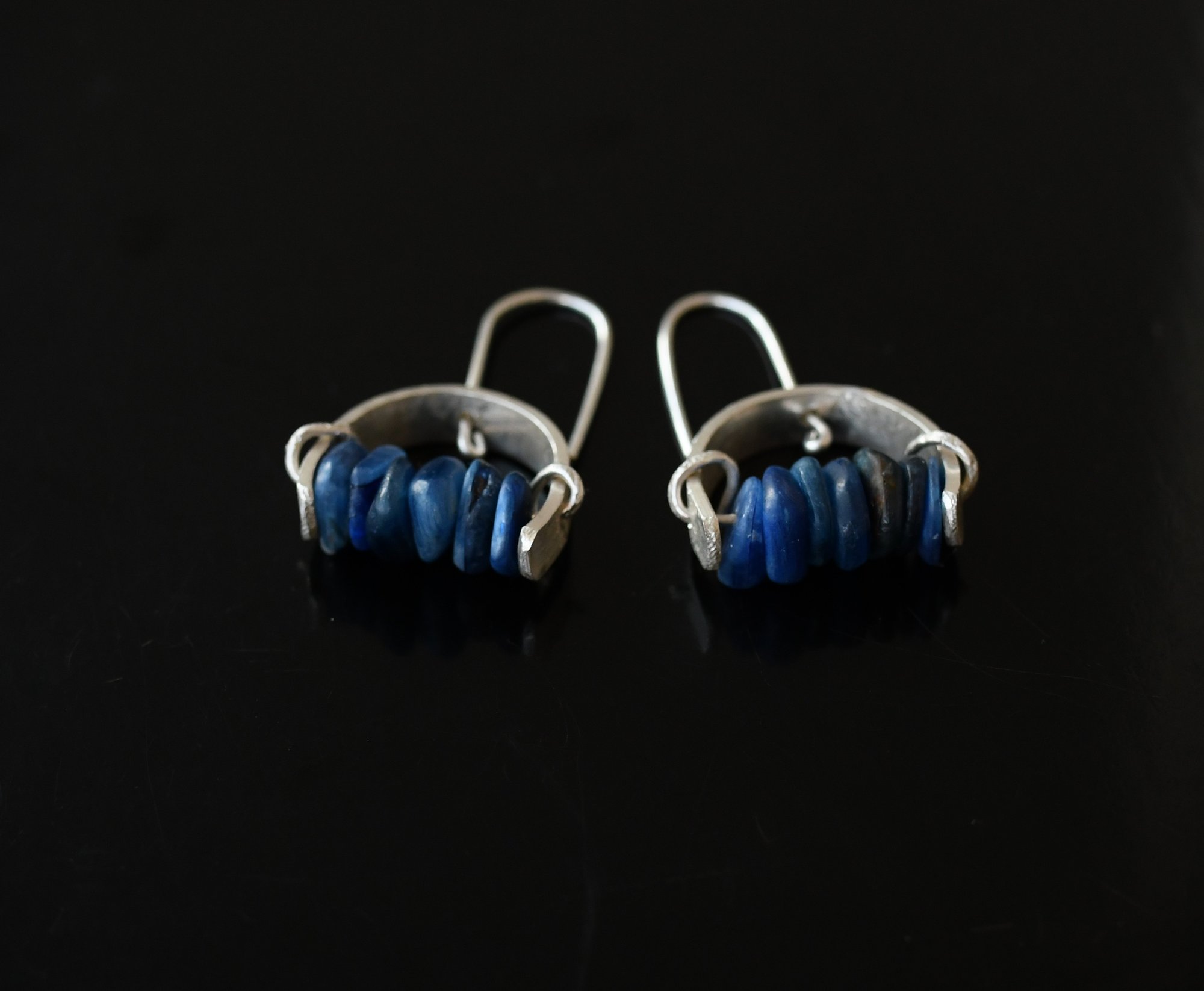 These are a pair of soothing earrings resonating with the healing properties of blue kyanite. Kyanite serves as a constant reminder of our innate connection to the divine and the limitless possibilities that lie within.